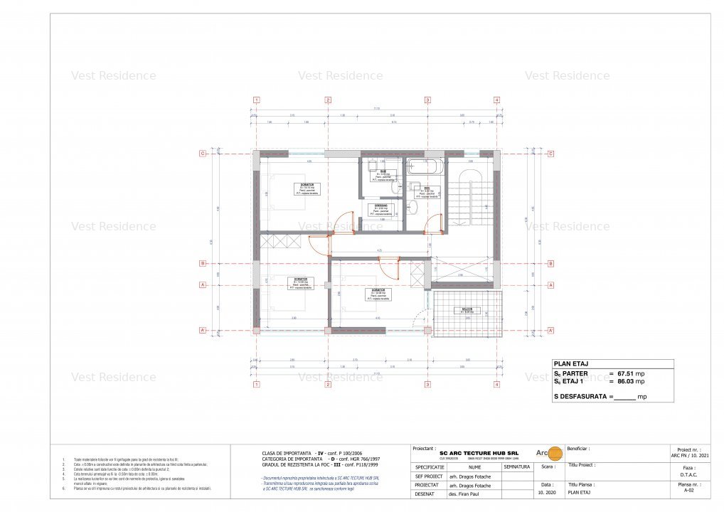 Regim de inaltime P+1E, avand o suprafata construita de 154mp si o suprafata utila de 120mp.