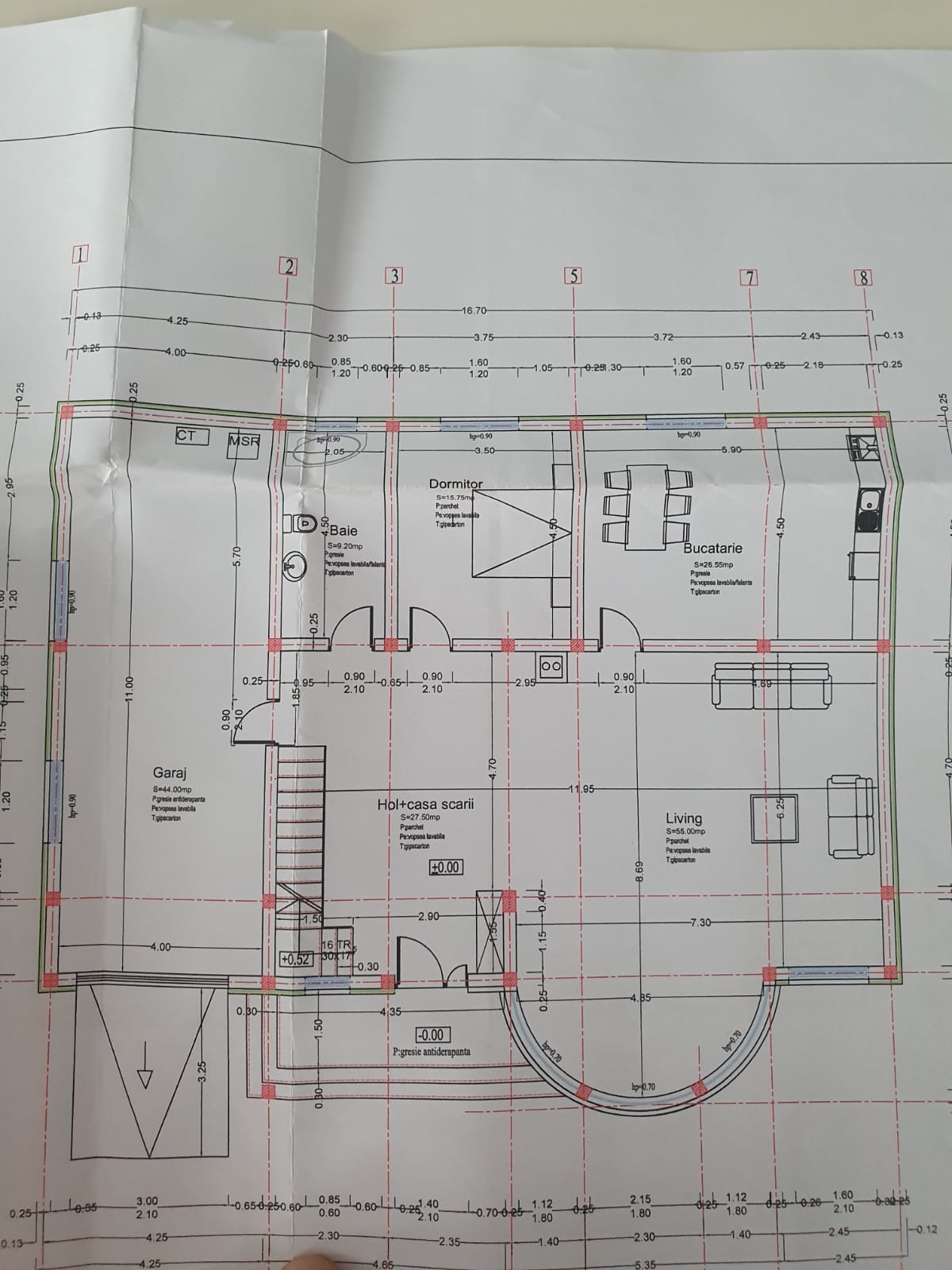 -Parter: Living 55 mp, hol + casa scarii 27.5 mp, bucatarie inchisa 26.55 mp, dormitor 15.75 mp, baie 9.2 mp, garaj 44 mp.