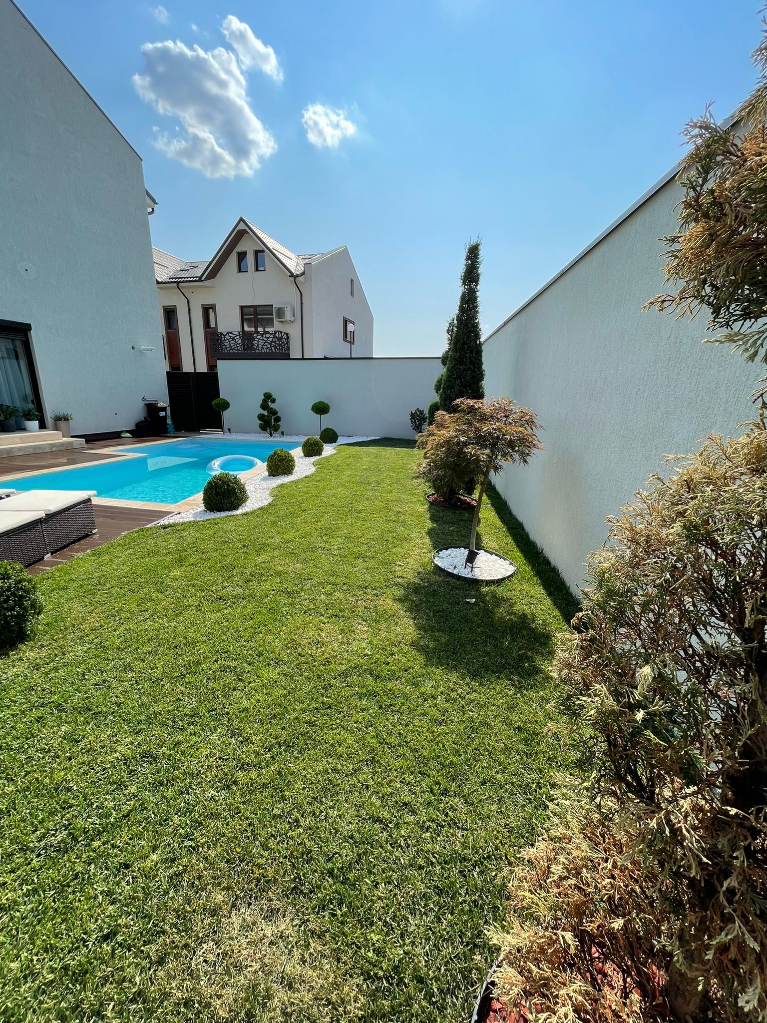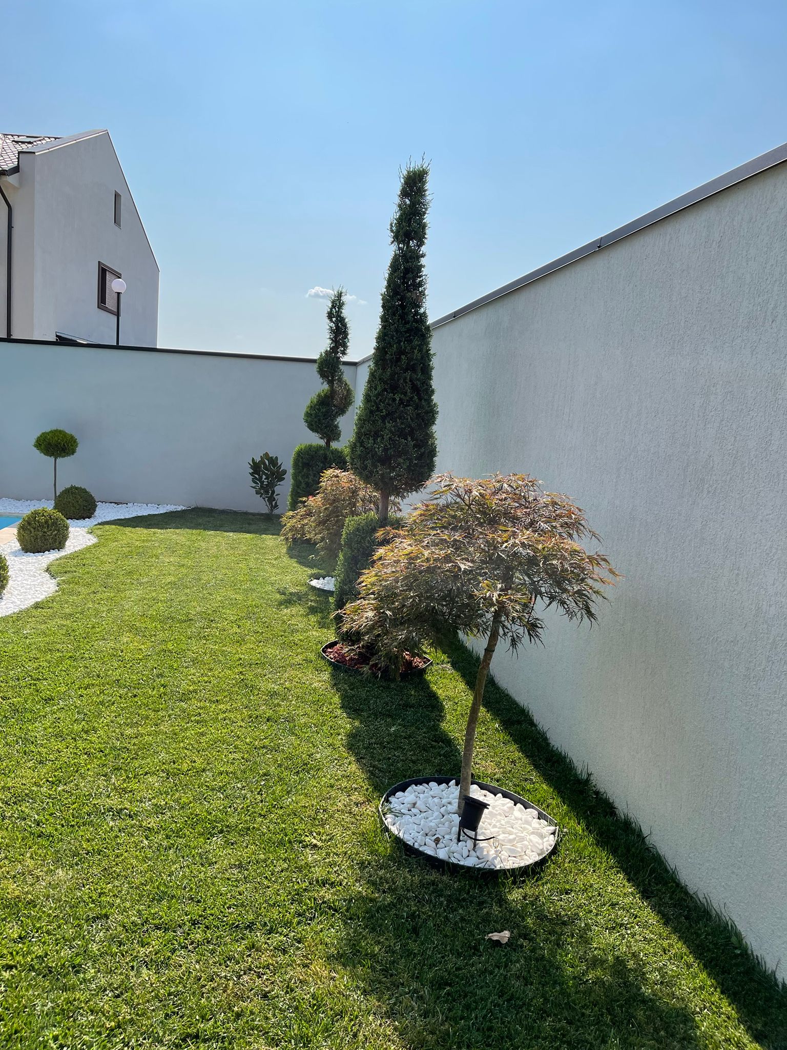 -Gazon matur si pomi ornamentali, cu sisteme de drenaj si de irigatii automatizate.